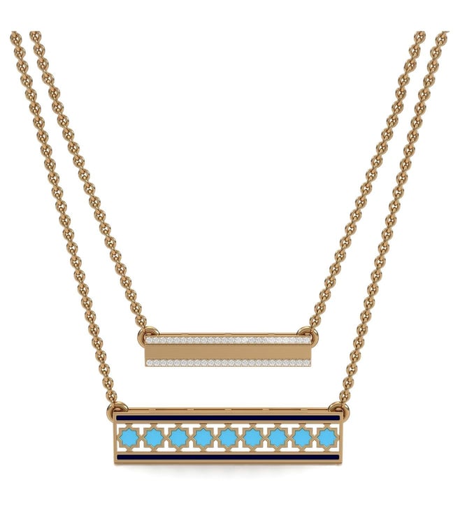 Yellow Gold Miraas Emira Double Chain Horizontal Bar Pendant - Medium