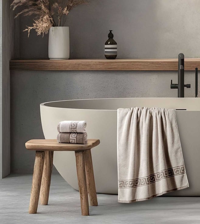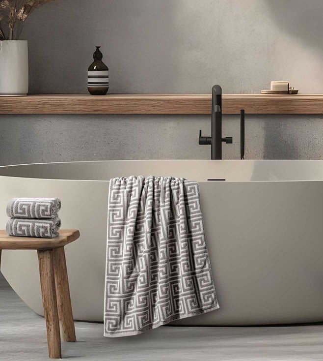 100 % Cotton Yarn Dyed Mouse 650 GSM Roma Bath Towel with All Over Detailing