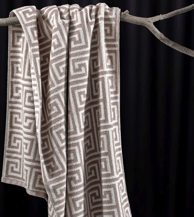 100 % Cotton Yarn Dyed Camel 650 GSM Roma Bath Towel with All Over Detailing