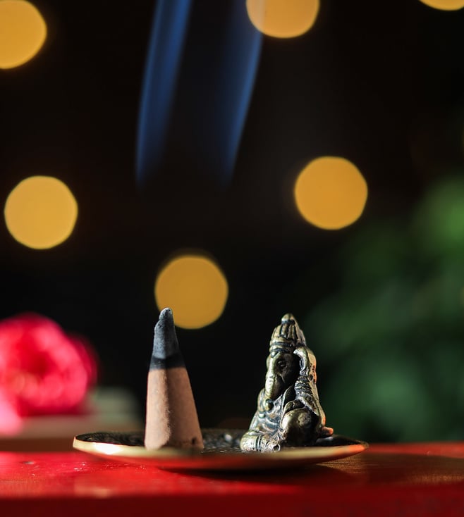 Antique Gold Ganesha Incense Holder