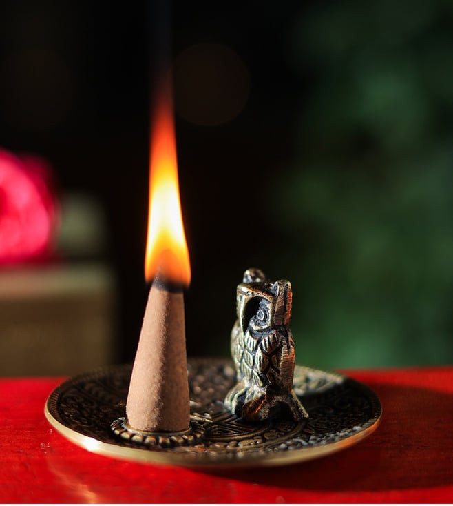 Antique Gold Divine Owl Incense Holder