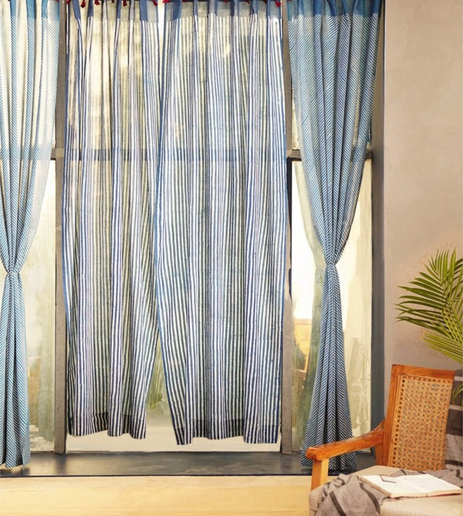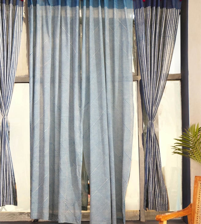 Indigo Blue Loops Cotton Curtain