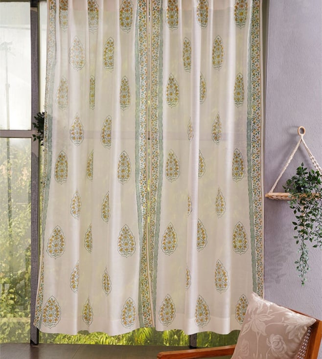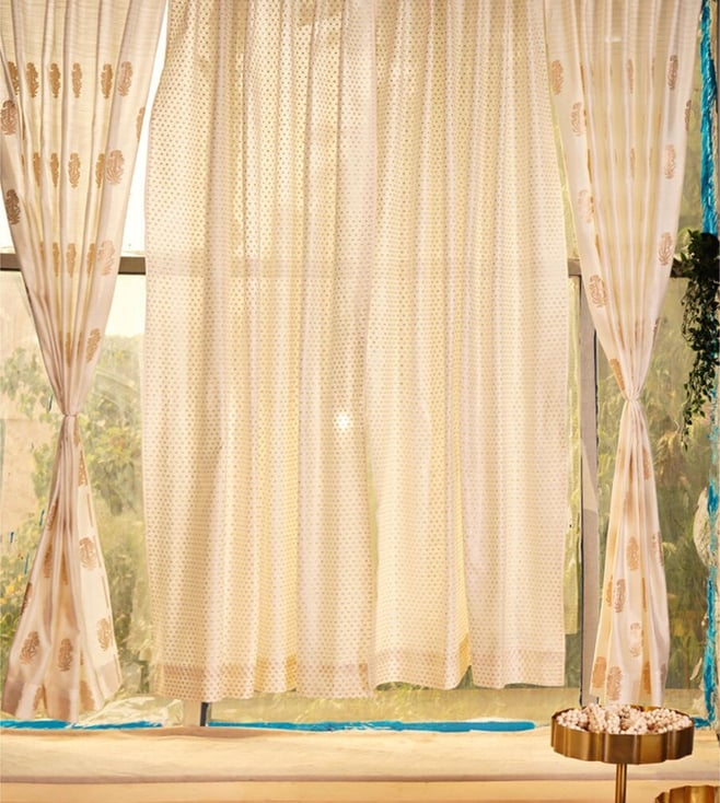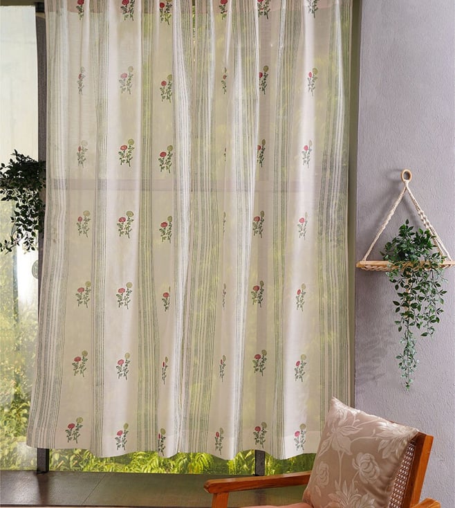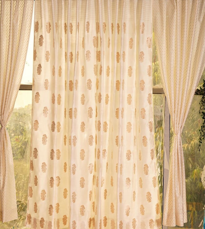 Natural White Concealed Loop Chanderi Floral Curtain