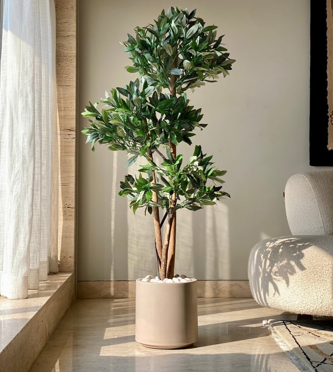 Green Natural Wooden Trunk & Fabric Artificial Plant