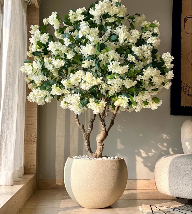 Artificial White Blossom Plant - 6 Feet (With Pot) - (Set of 1)