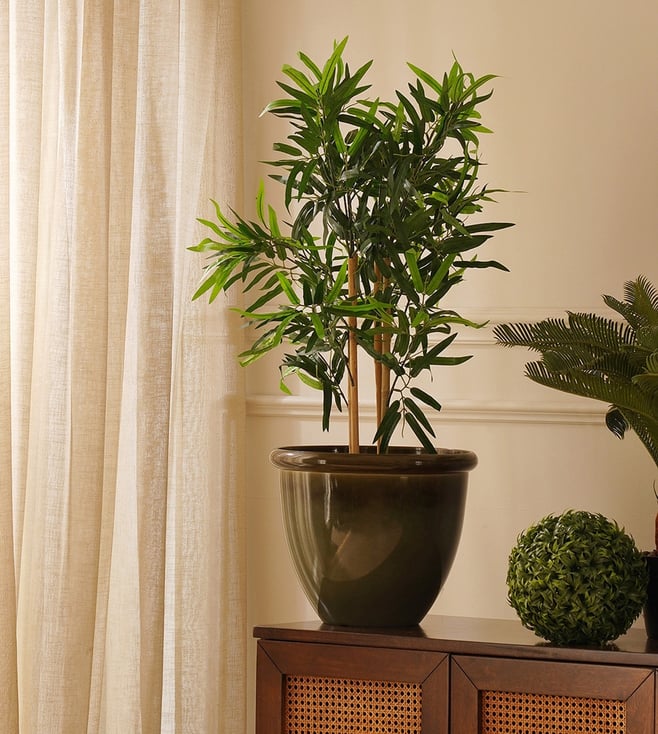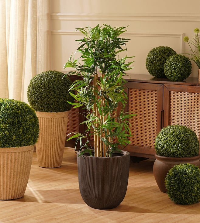 Maroon Natural Wooden Trunk + Pvc Tall Plants