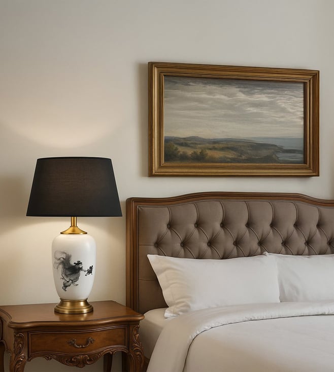 Sand & Black Silk Lamp Shade with Thin Ribbon