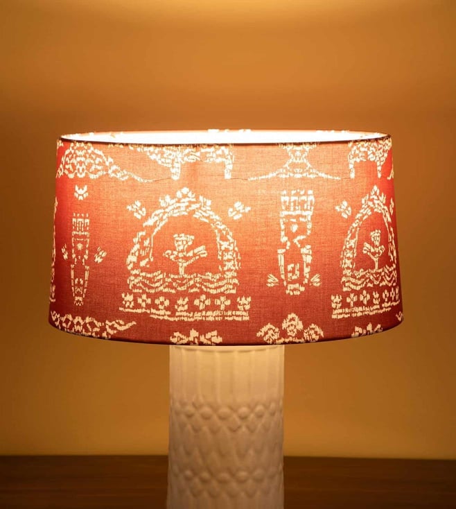 Koda Grama Fabric And Metal Red Tapered Medium Drum Lampshade