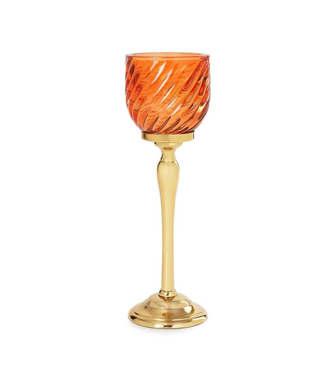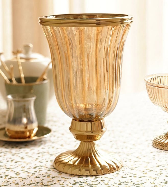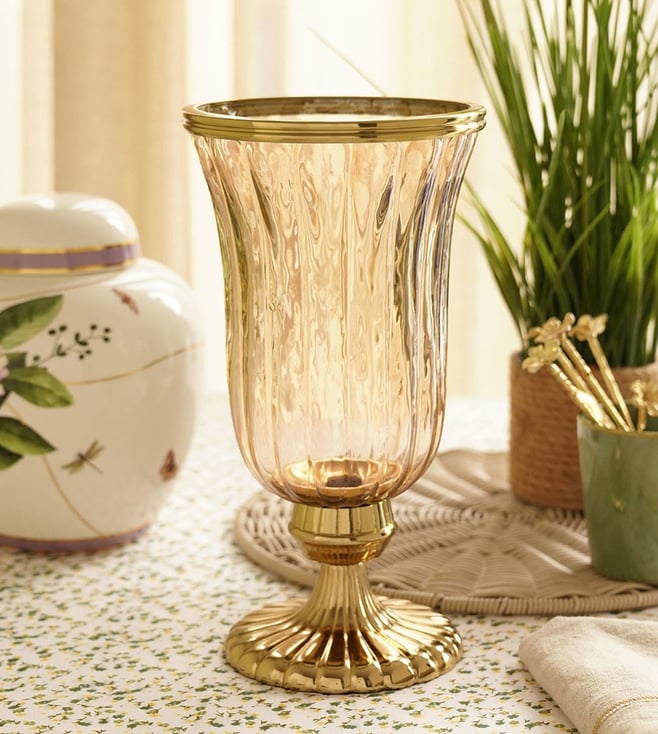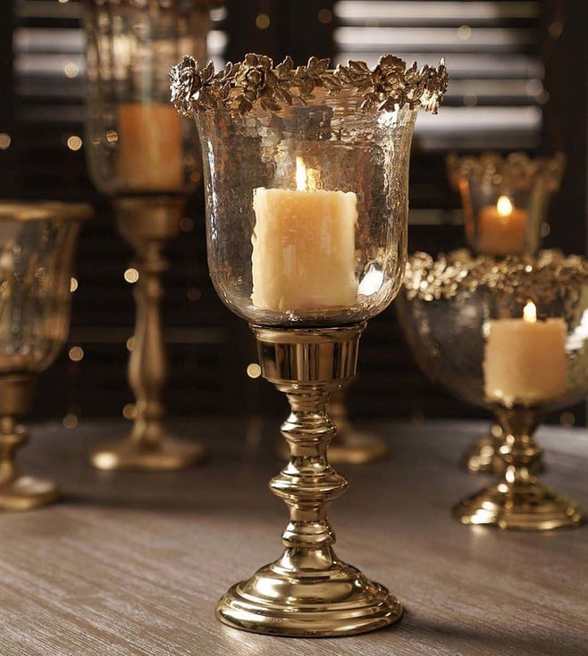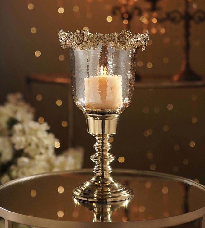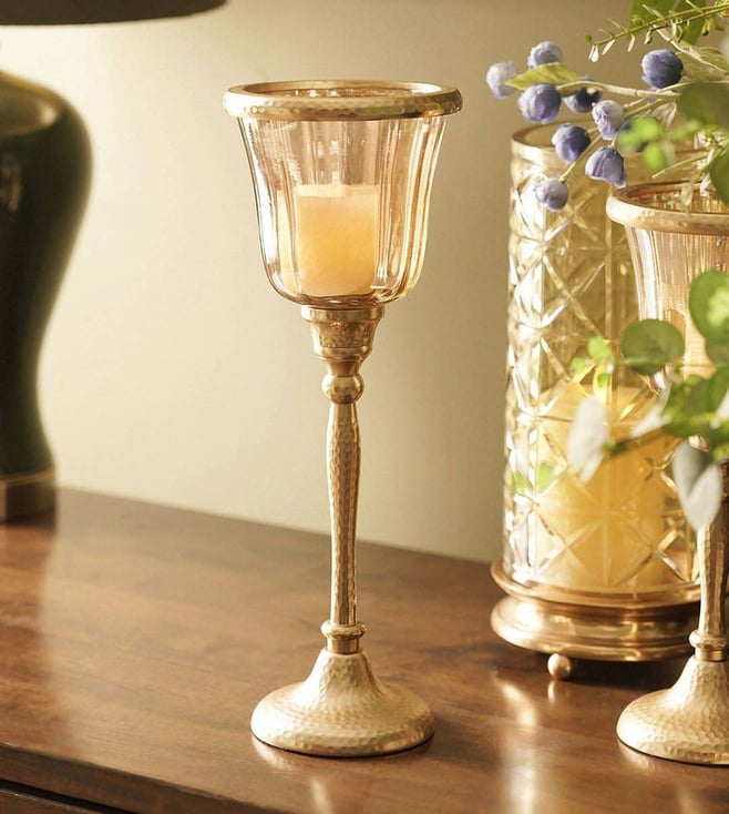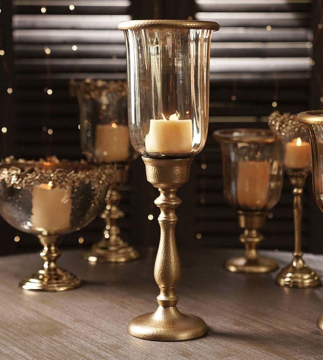 Amber & Gold Aluminium Tall Hammered Hurricane Candle Holder