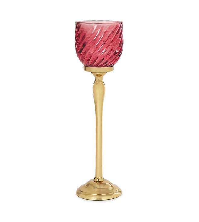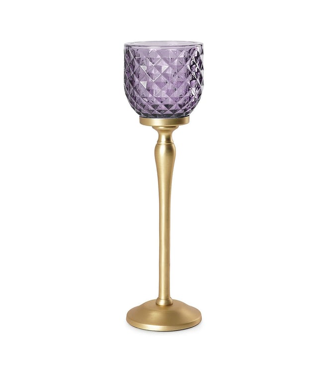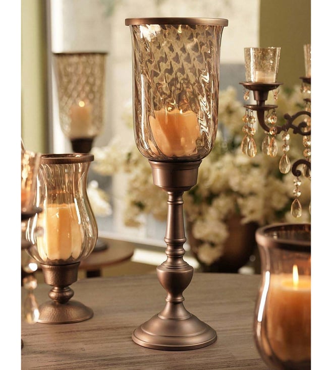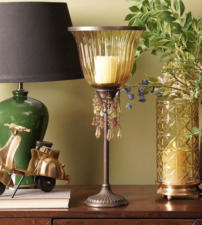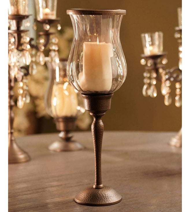 Brown Aluminium Antique Finish Candle Holder With Metal Stand