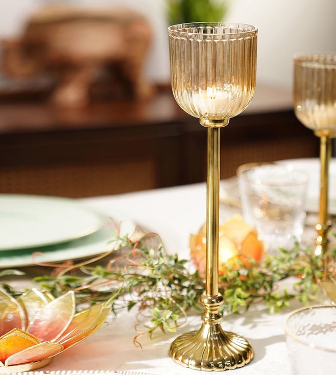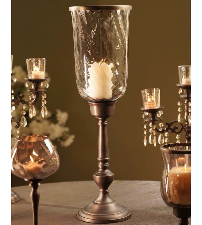 Brown Aluminium Antique Finish Candle Holder With Stand