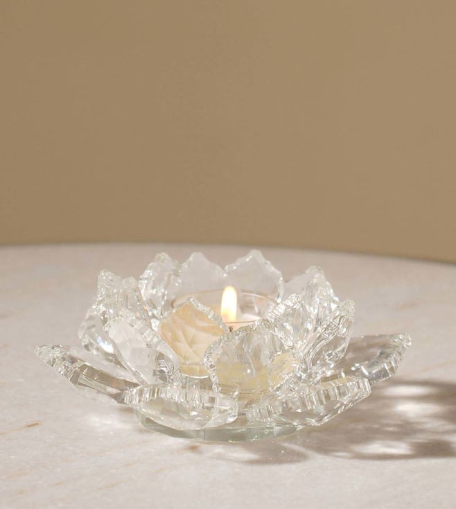 Transparent Crystal Lotus Shaped Tealight Candle Holder