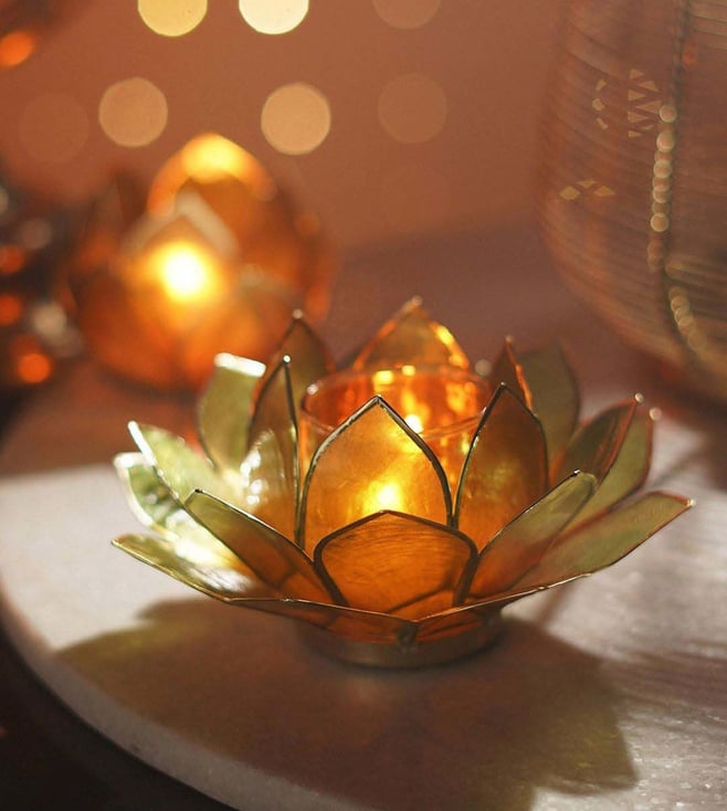 Amber & Green Ombre Metal 22 Petals Capiz Tealight Holder