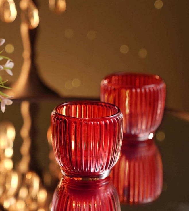 Red Glass Ribbed Small Tealight Holders - Set of 4
