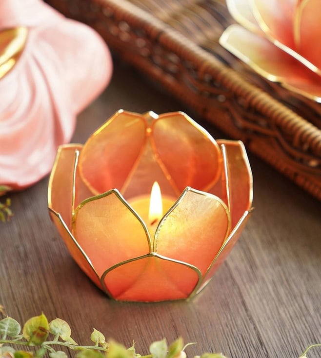 Amber & Green Ombre Metal 12 Petals Capiz Tealight Holder