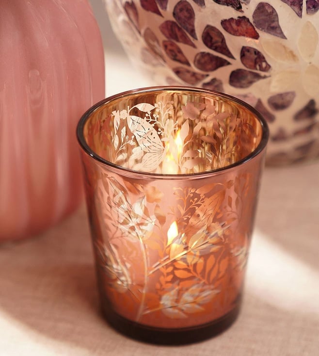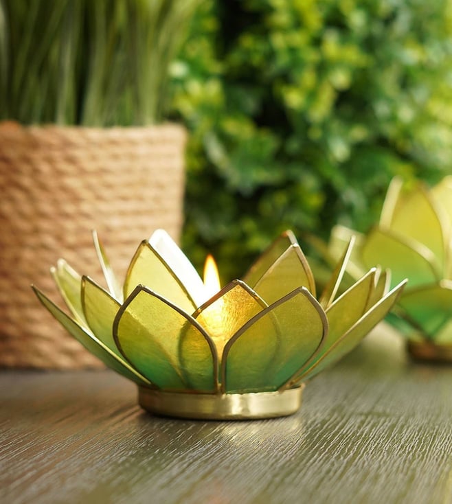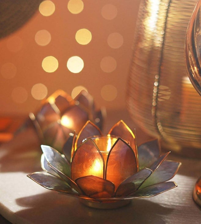 Amber & Green Ombre Metal 22 Petals Capiz Tealight Holder