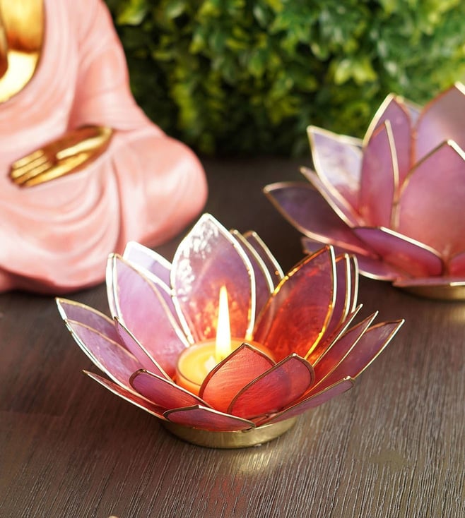 Purple Mother of Pearl 21 Petals Capiz Tea Light Holder