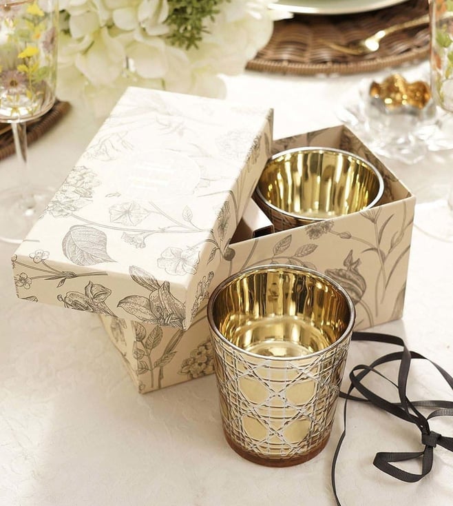 Gold Glass Large Star Cut Votives - Set of 2