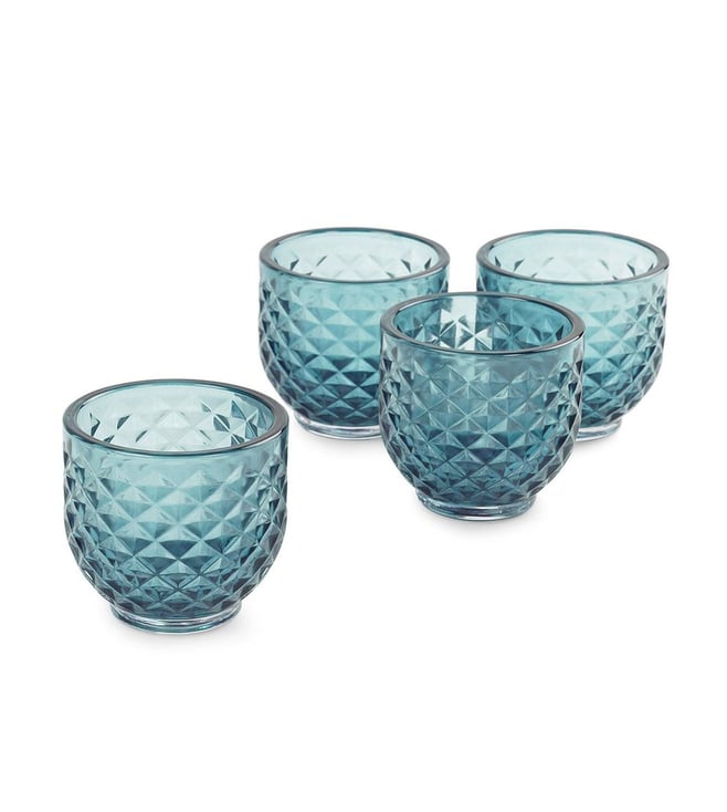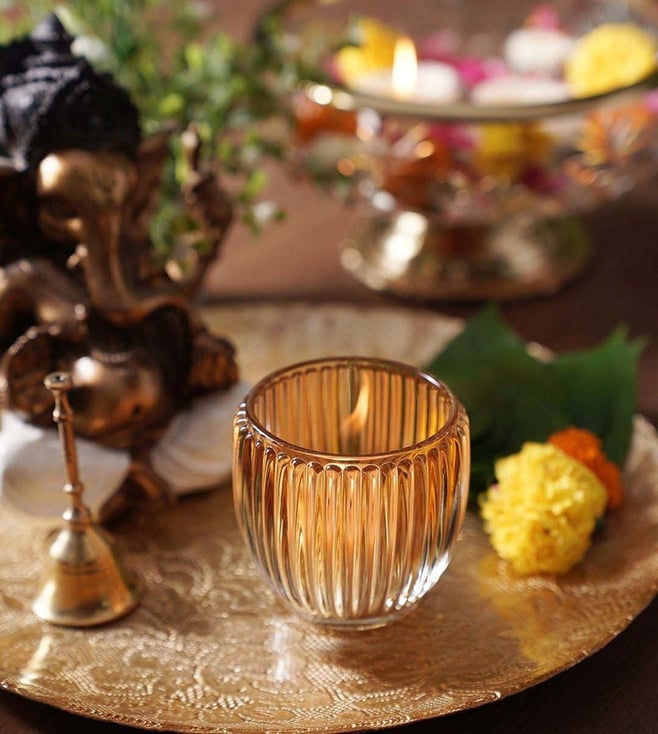 Light Amber Glass Ribbed Small Tealight Holders - Set of 4