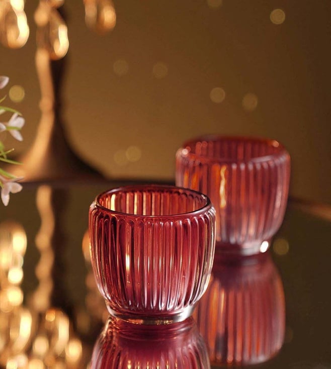 Marron Glass Ribbed Small Tealight Holders - Set of 4