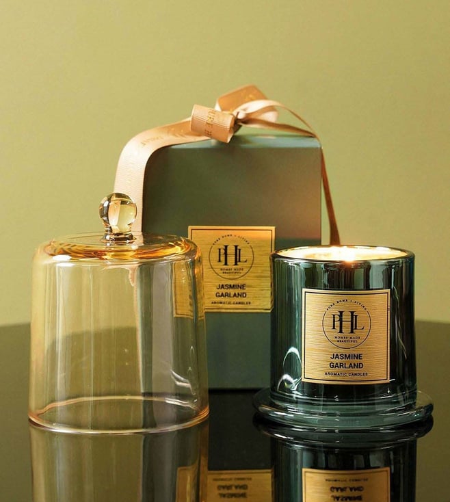 Green Glass Jasmine Garland Bell Jar Candle (150ml)