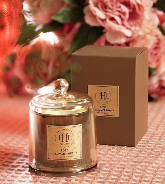 Brown Rose & Summer Berry Scented Candle With Cloche