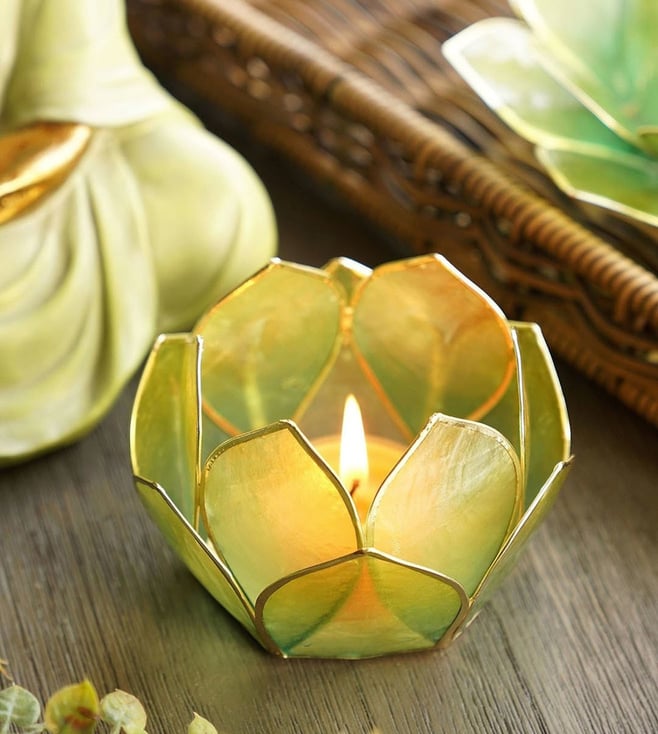 Green & Blue Mother of Pearl 12 Petals Capiz Tea Light Holder