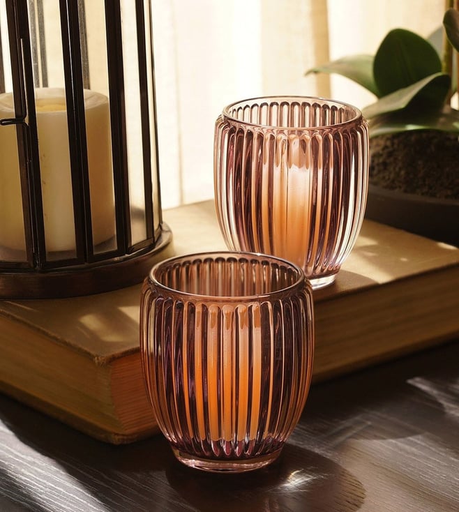 Maroon Glass Ribbed Tealight Holders - Set of 2