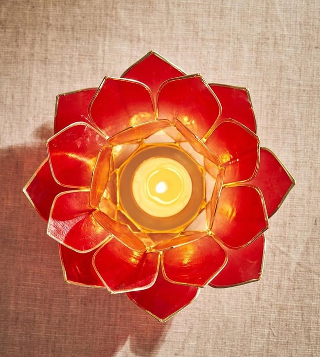Purple Mother of Pearl 21 Petals Capiz Tea Light Holder