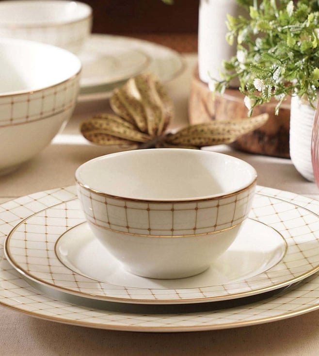 White Ceramic Criss Cross Detail Dinner Plates - Set of 2