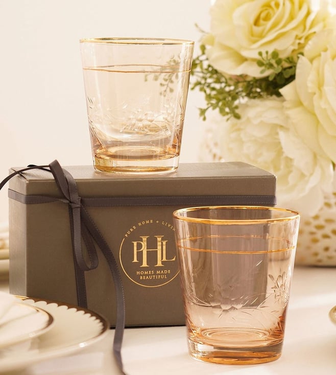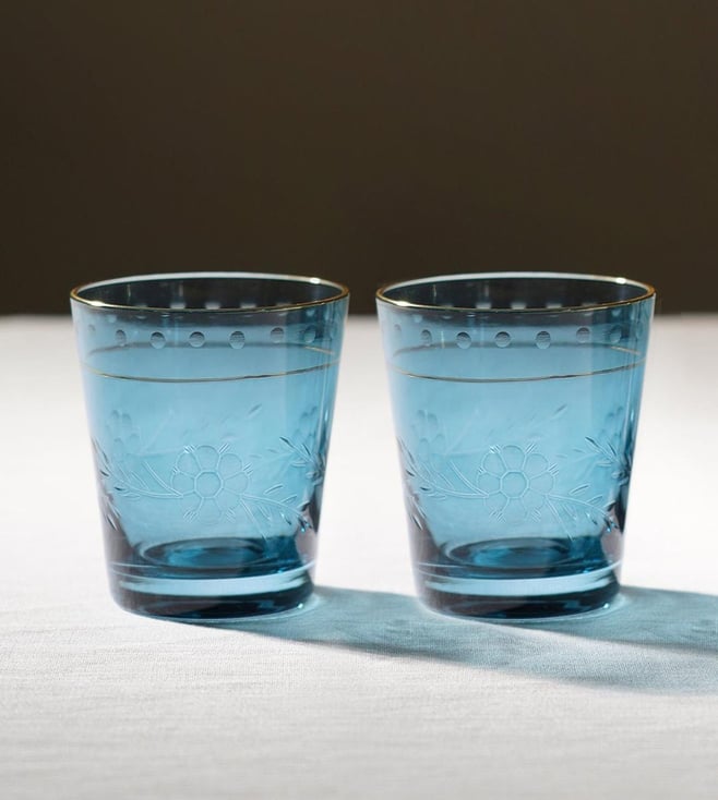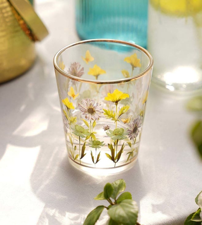 Transparent Glass Floral Print Drinking Glasses (0.22 L) - Set of 2