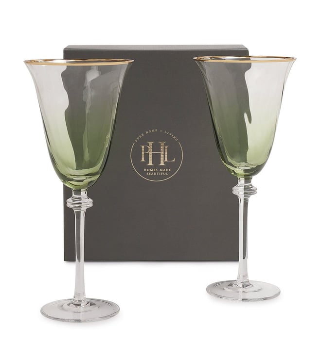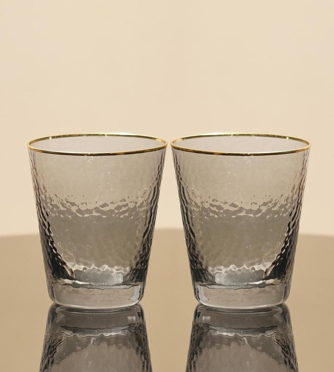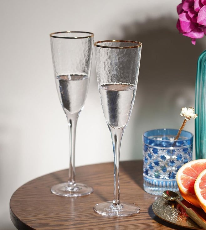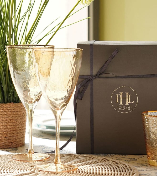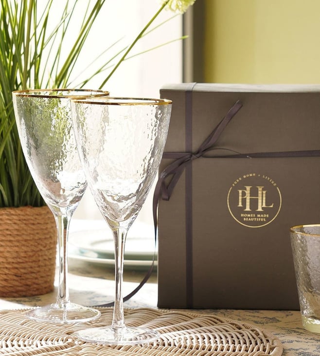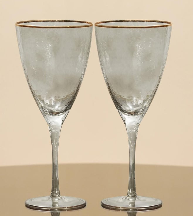 Clear & Yellow Glass Floral Print Wine Glasses (0.3 L) - Set of 2