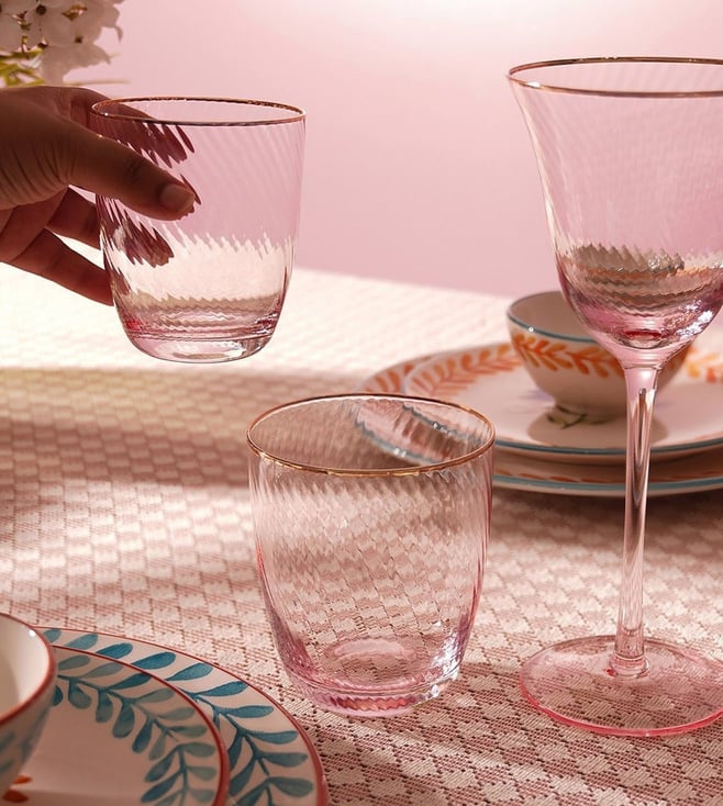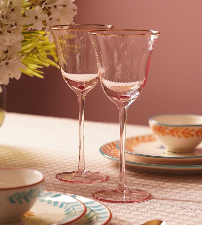 Pink Spiral Glass Textured Wine Glasses - Set of 2 (250 ml)
