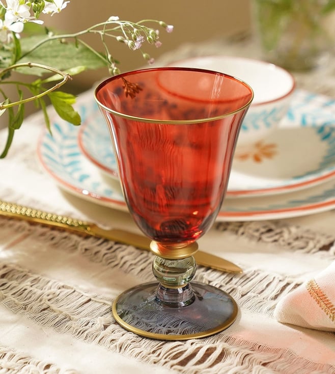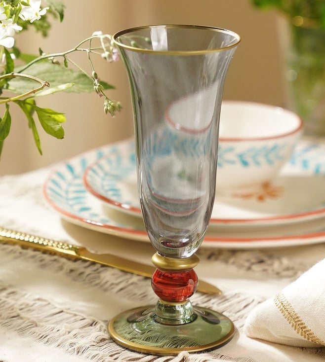 Orange & Green Glass Floral Print Wine Glasses (0.3 L) - Set of 2