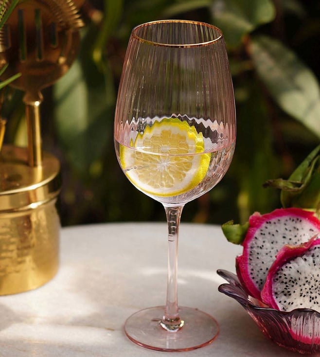 Pink Spiral Glass Textured Wine Glasses - Set of 2 (250 ml)