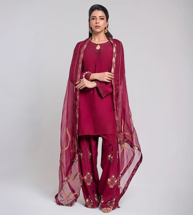 Khusboo & Pankaj Maroon Luxe Embroidered Farshi Suit Set With Dupatta