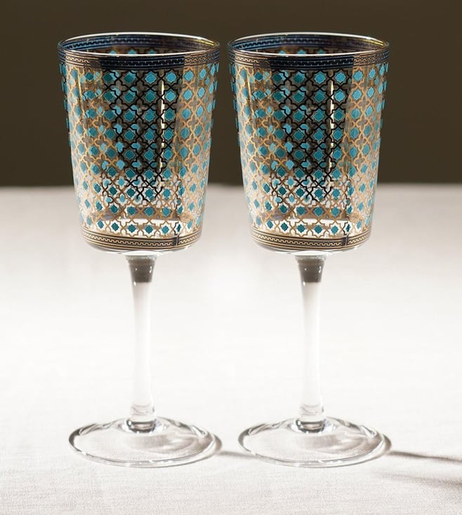 Orange & Green Glass Floral Print Wine Glasses (0.3 L) - Set of 2