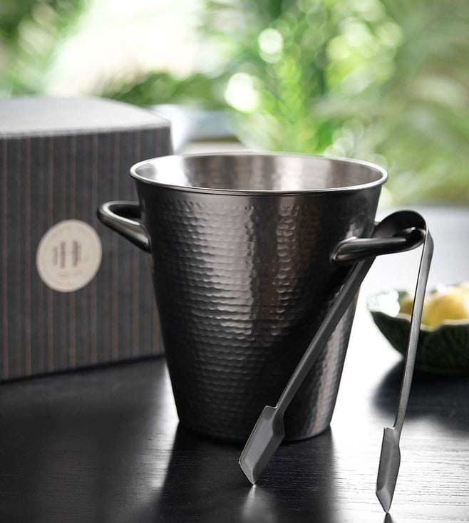 Grey Stainless Steel Matt Finish Hammered Ice Bucket With Tong