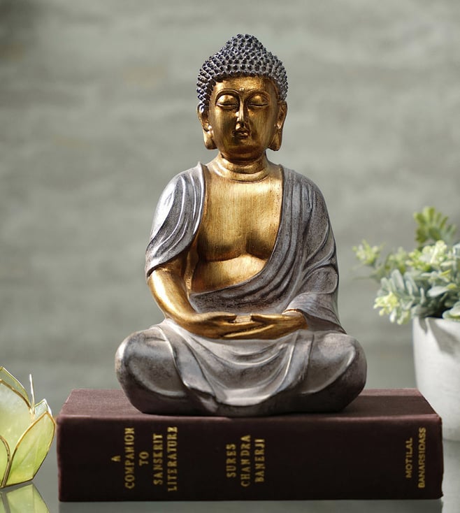 Pink & Gold Polyester Antique Finish Buddha Figurine