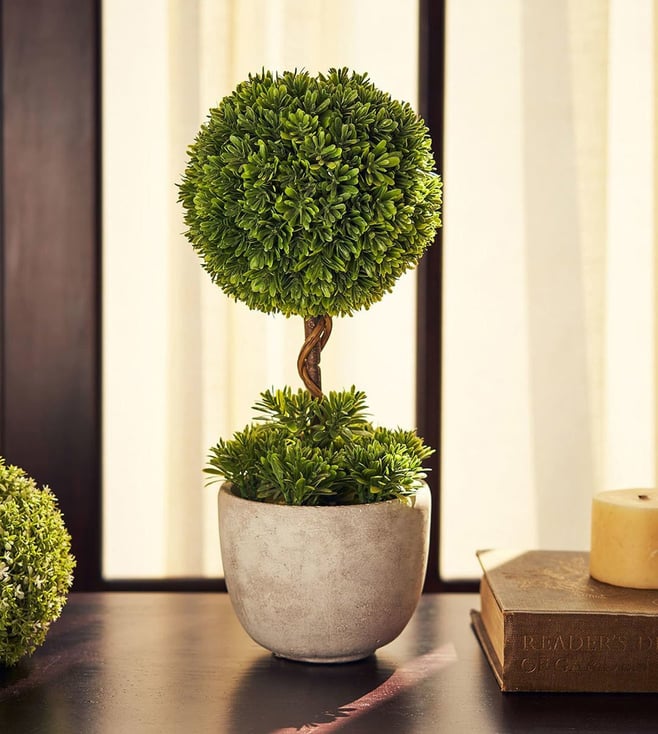 Green Plastic Artificial Bamboo Leaf Plant With Cement Pot