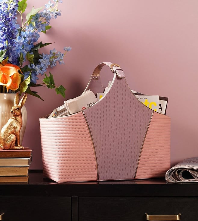 Pink & Purple Stitched Faux Leather Magazine Basket