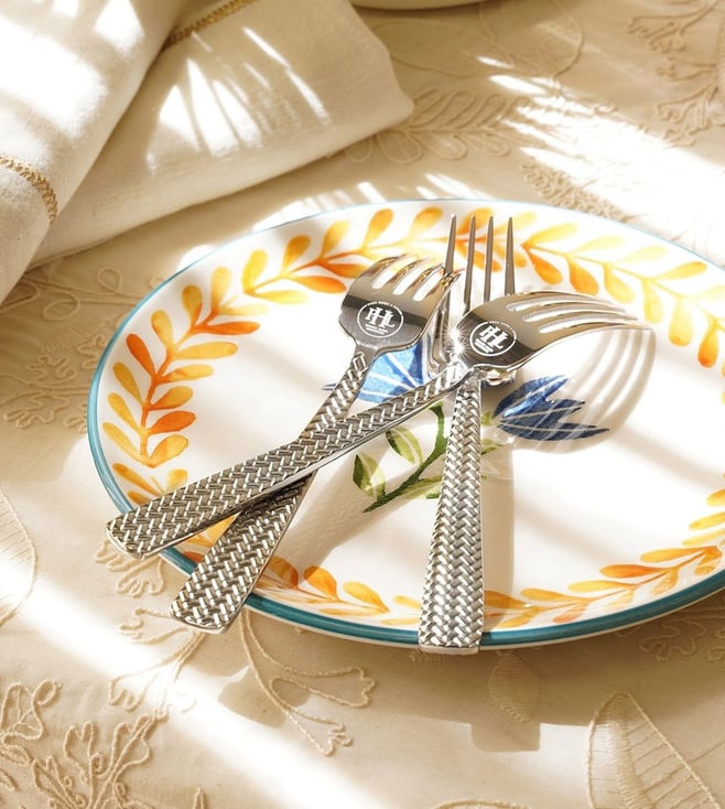Silver Stainless Steel Zig Zag Textured Dessert Forks - Set of 6