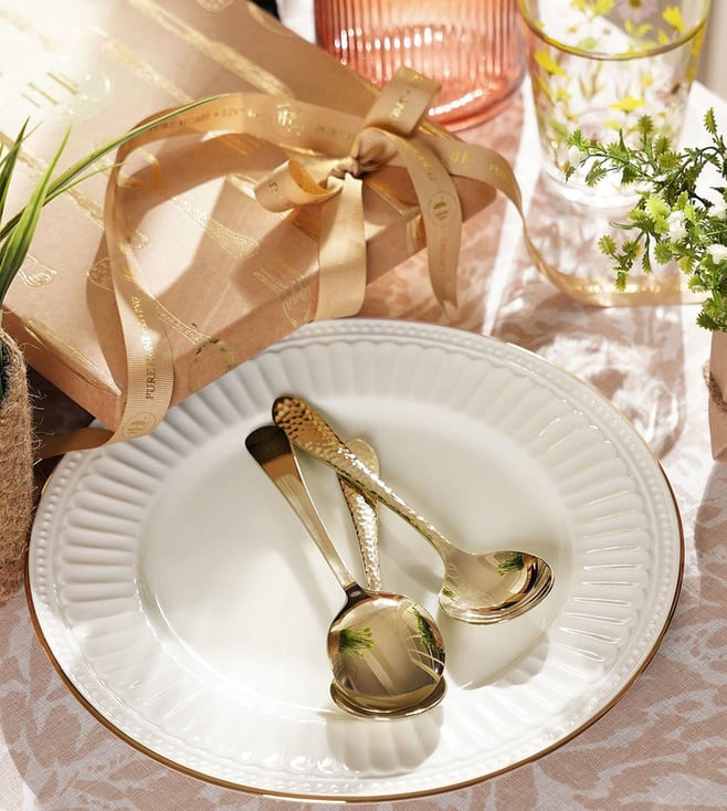 Gold Stainless Steel Zig Zag Textured Dessert Spoons - Set of 6