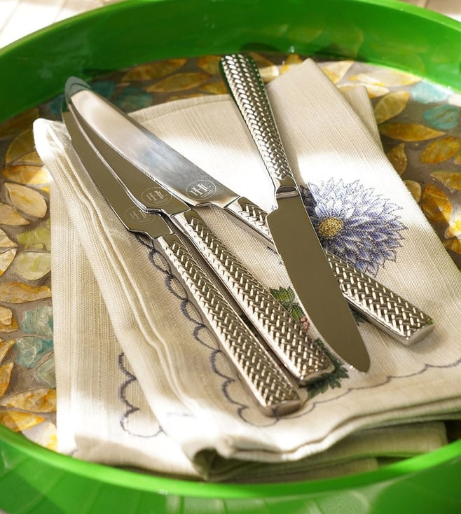 Silver Stainless Steel Zig Zag Textured Dessert Knives - Set of 6