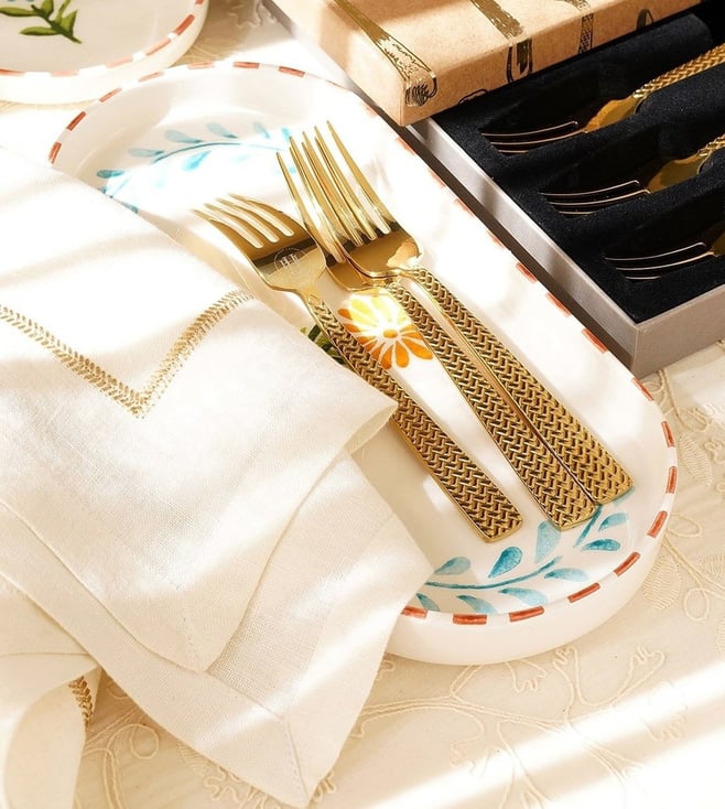 Gold Stainless Steel Zig Zag Textured Dessert Forks - Set of 6