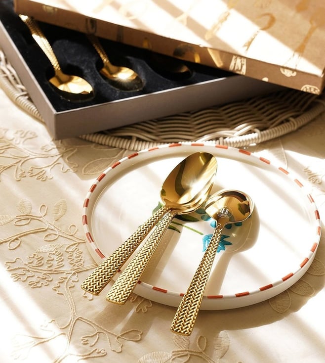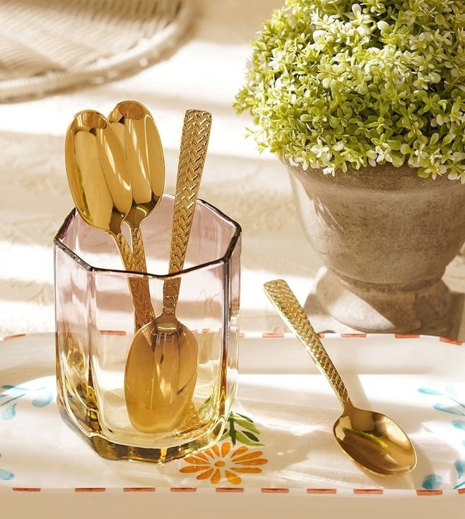 Gold Stainless Steel Zig Zag Textured Tea Spoons - Set of 6