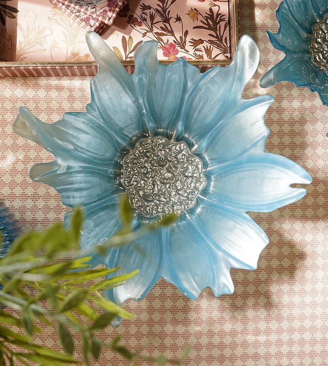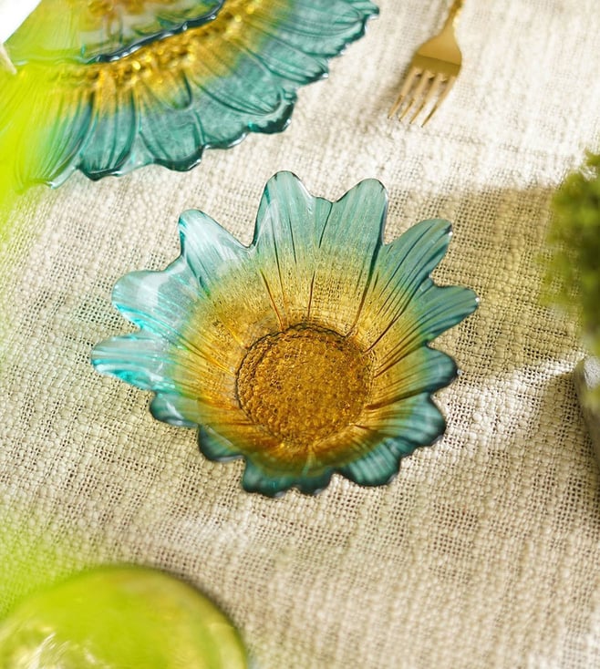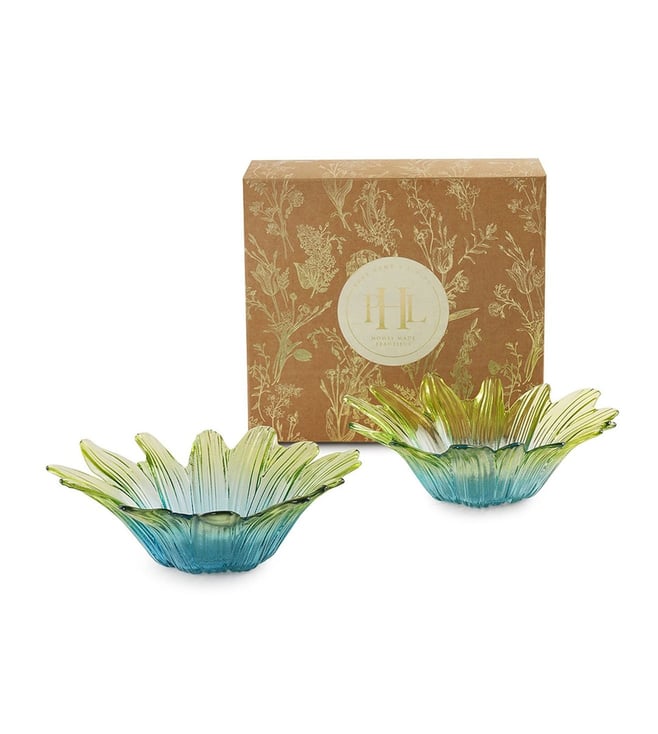 Green Glass Floral Shaped Serving Bowls (0.3 L) - Set of 2