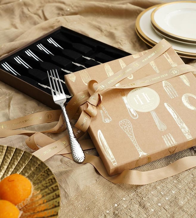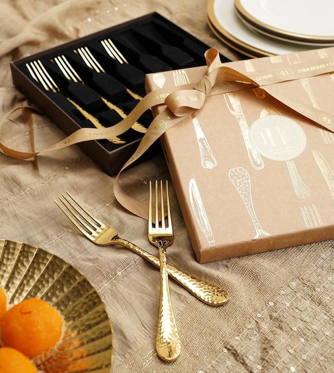 Gold Stainless Steel Zig Zag Textured Dessert Forks - Set of 6