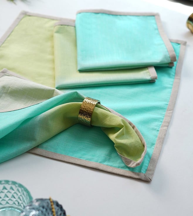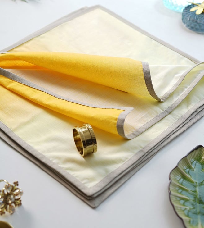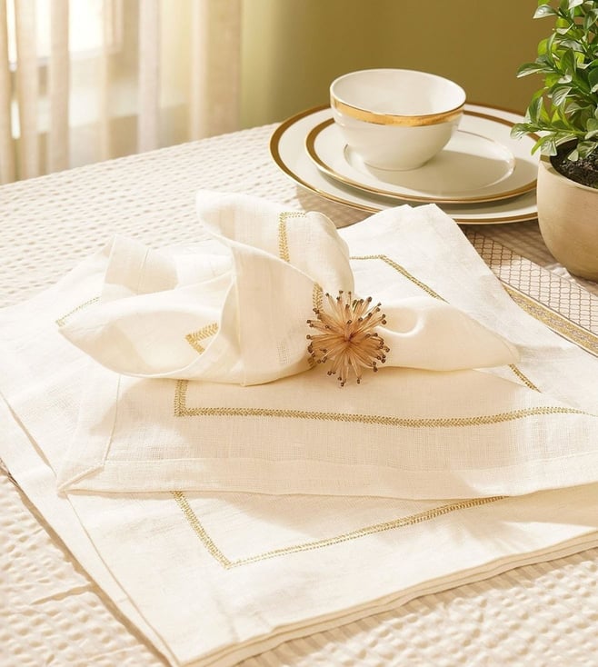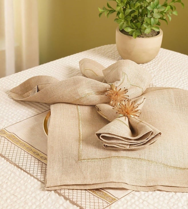 Off White Linen Zari Embroidered Square Napkins - Set of 4