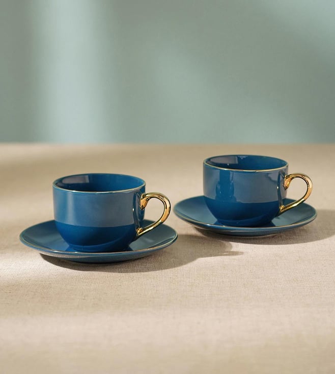 Blue Porcelain Textured Tea Cups and Saucer